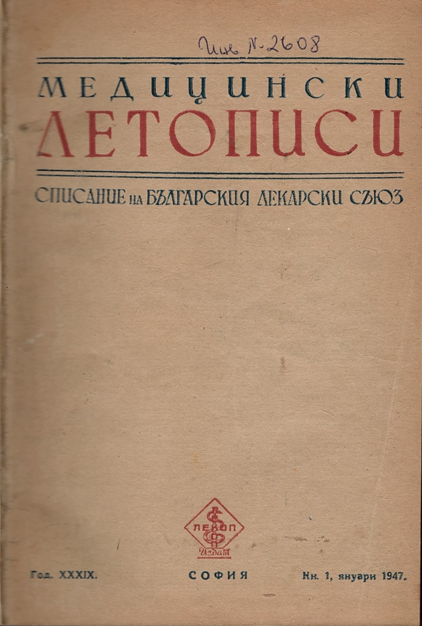 Медицински летописи. Списание на Българския лекарски съюз, год. XXXIX, кн. 1, 1947 г.