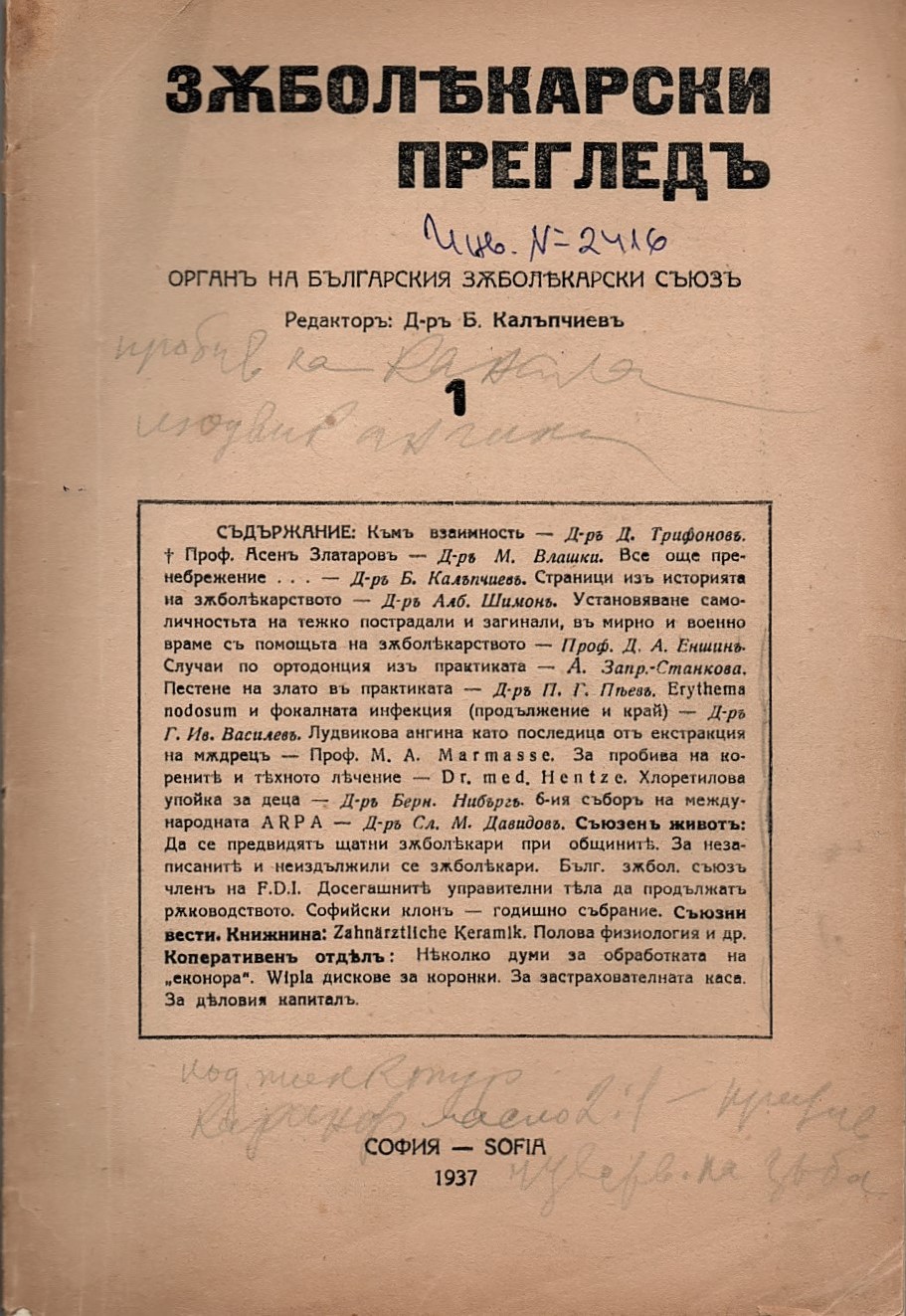 сп. Зъболекарски прегледъ 1, 1937 год.