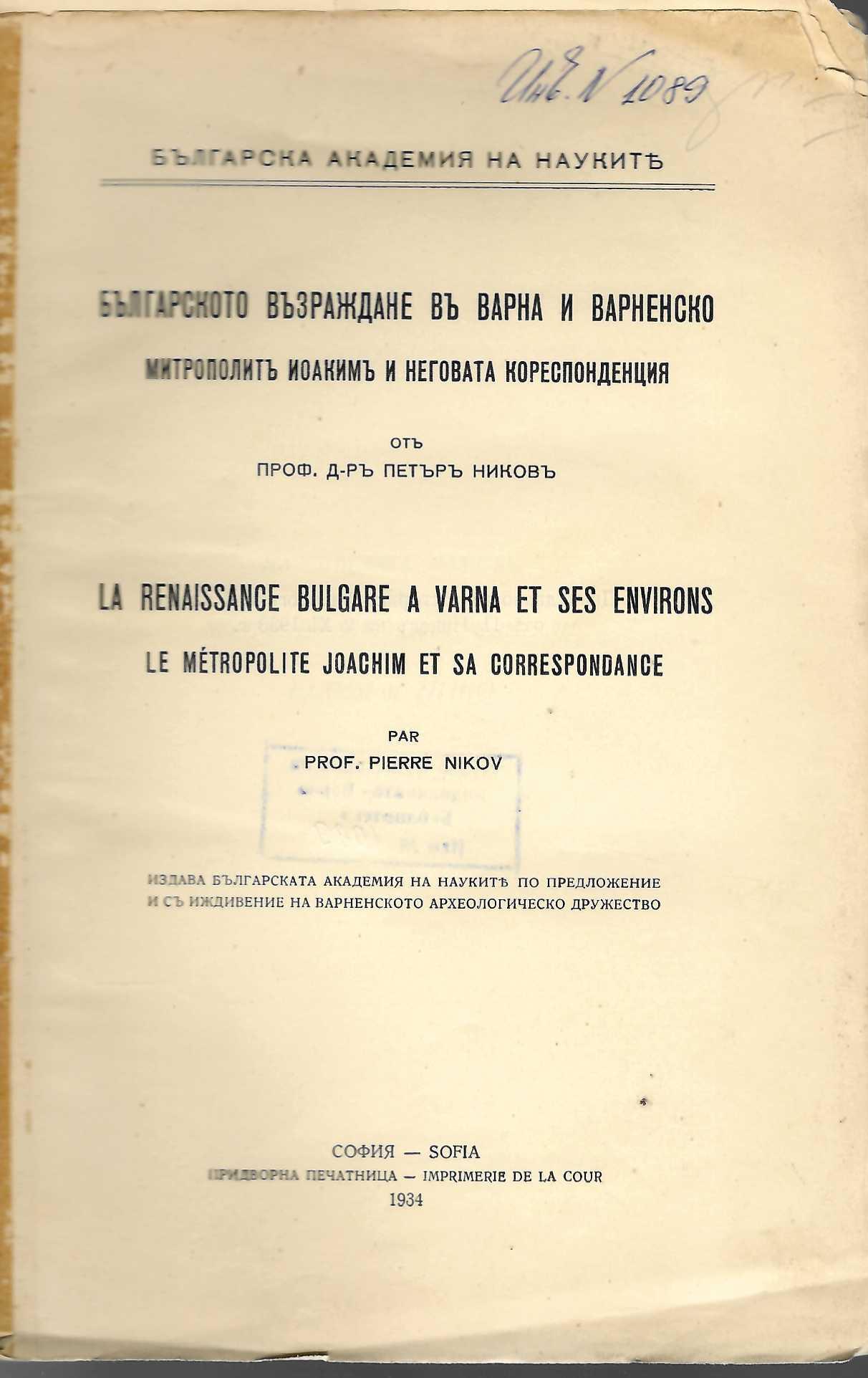 Българското Възраждане въ Варна и Варненско. Митрополитъ Иоакимъ и неговата кореспонденция.