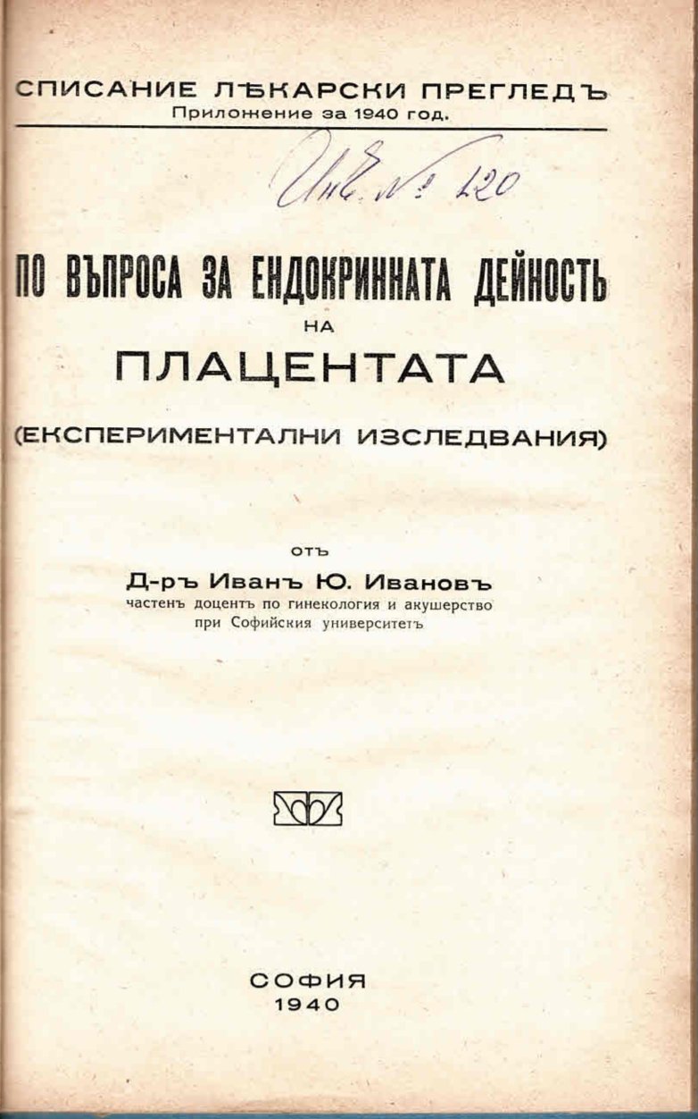 По въпроса за ендокринната дейност на плацентата ( експериментални изследвания)